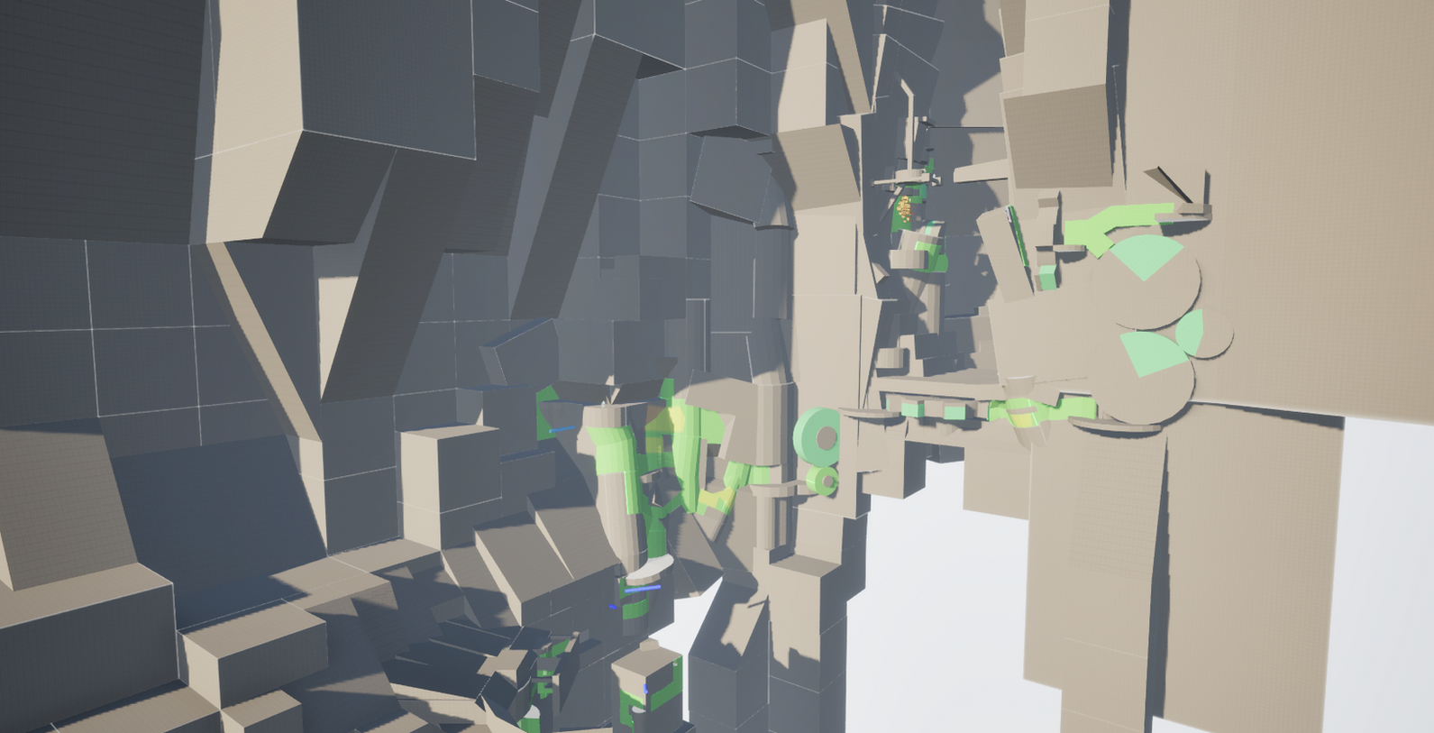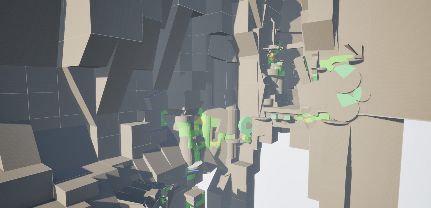 This created much more interesting climbs for the player and also helped us create a way more natural shape of the overall area. Our environment artists joined the team later so placing these rocks with the correct shape of the level in mind saved our environment artists a lot of time.